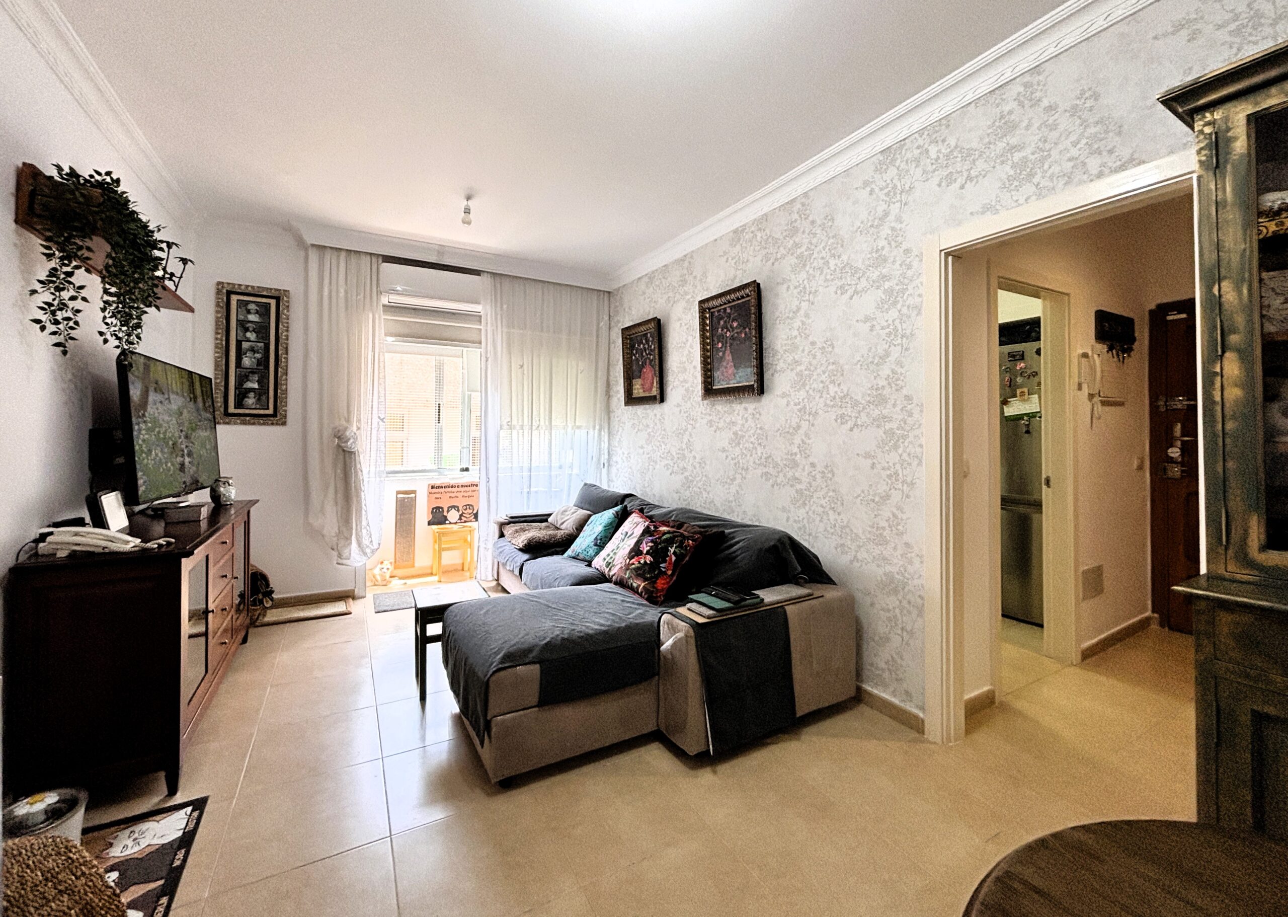 👉 Al fondo del hall, accedes al salón, un espacio amplio y luminoso, que conecta directamente con un balcón exterior ideal para ventilar y dejar entrar la luz natural.