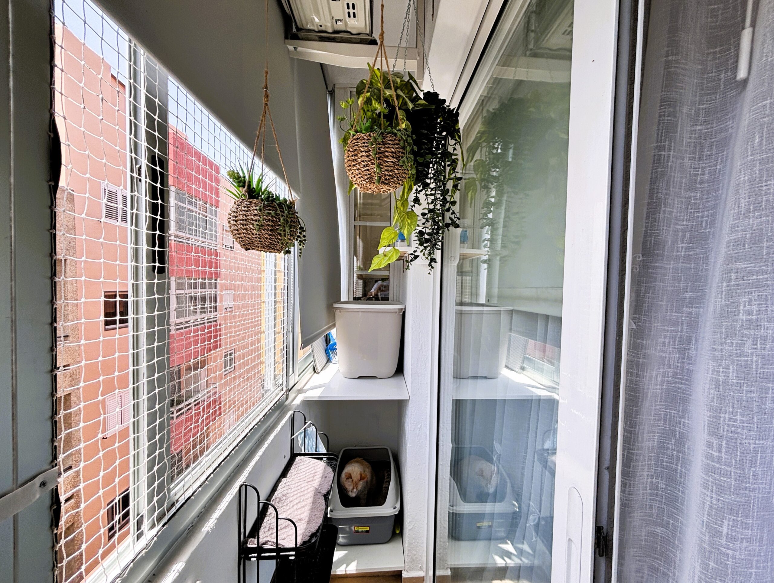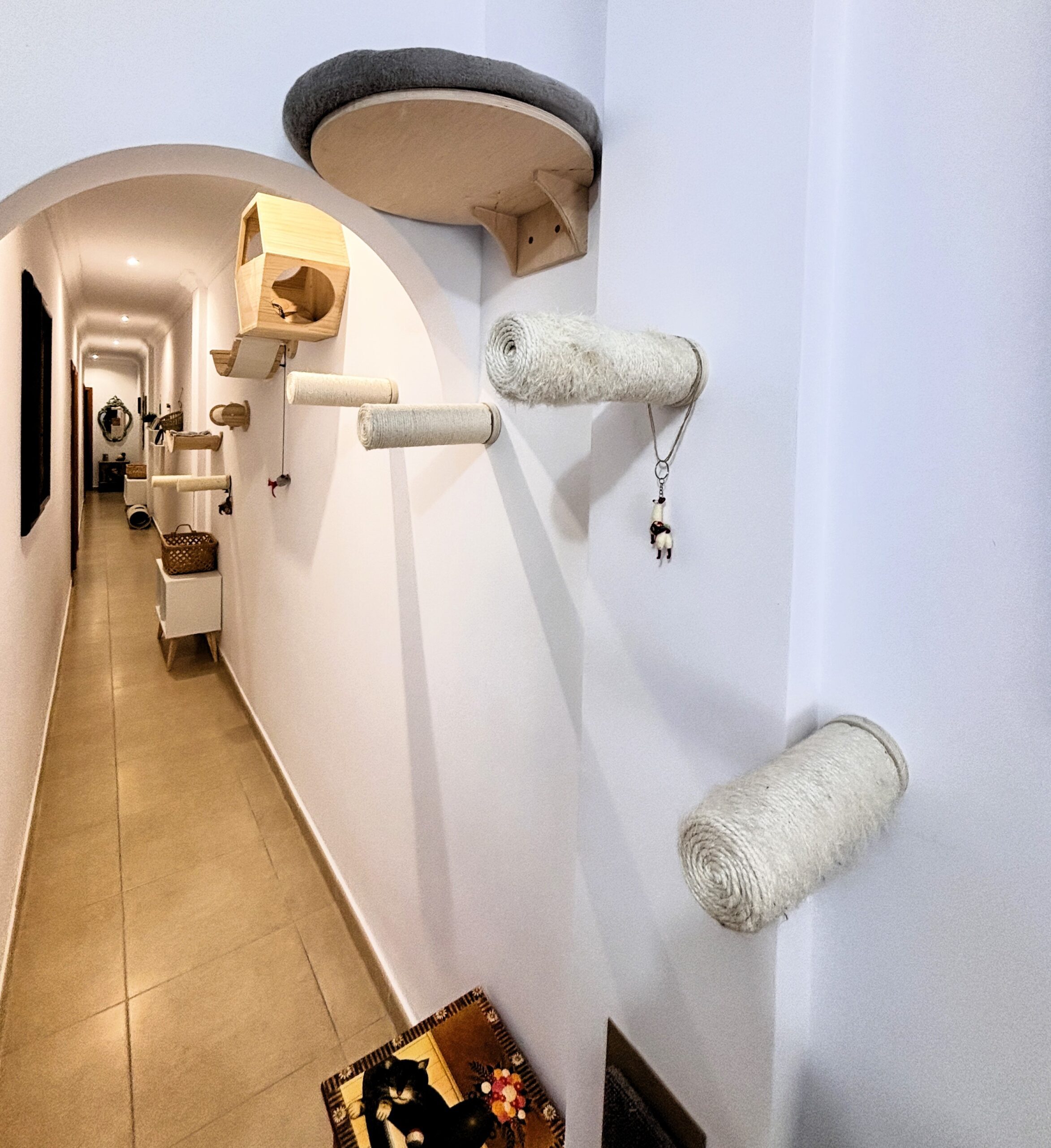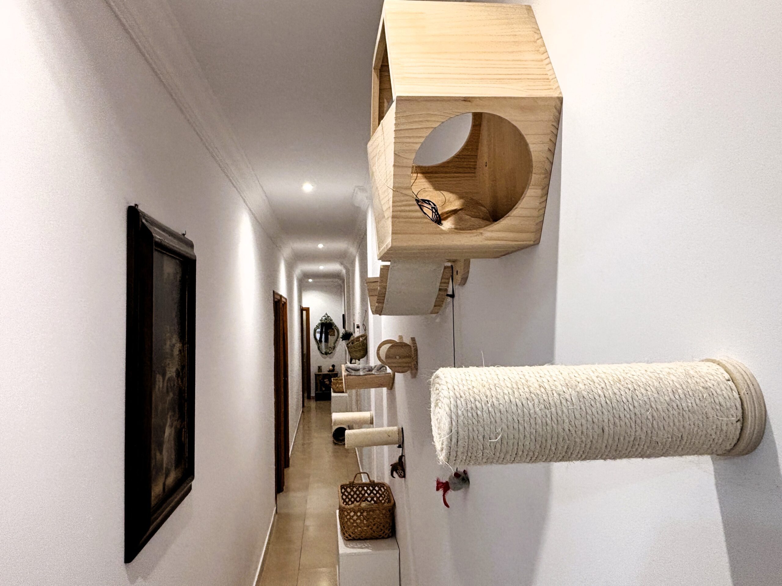 La actual propietaria ha adaptado un pequeño parque de recreo para sus gatos, demostrando que el espacio se ha vivido con cuidado y pensando en el bienestar, no solo de las personas, sino también de sus mascotas.