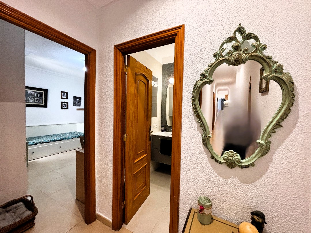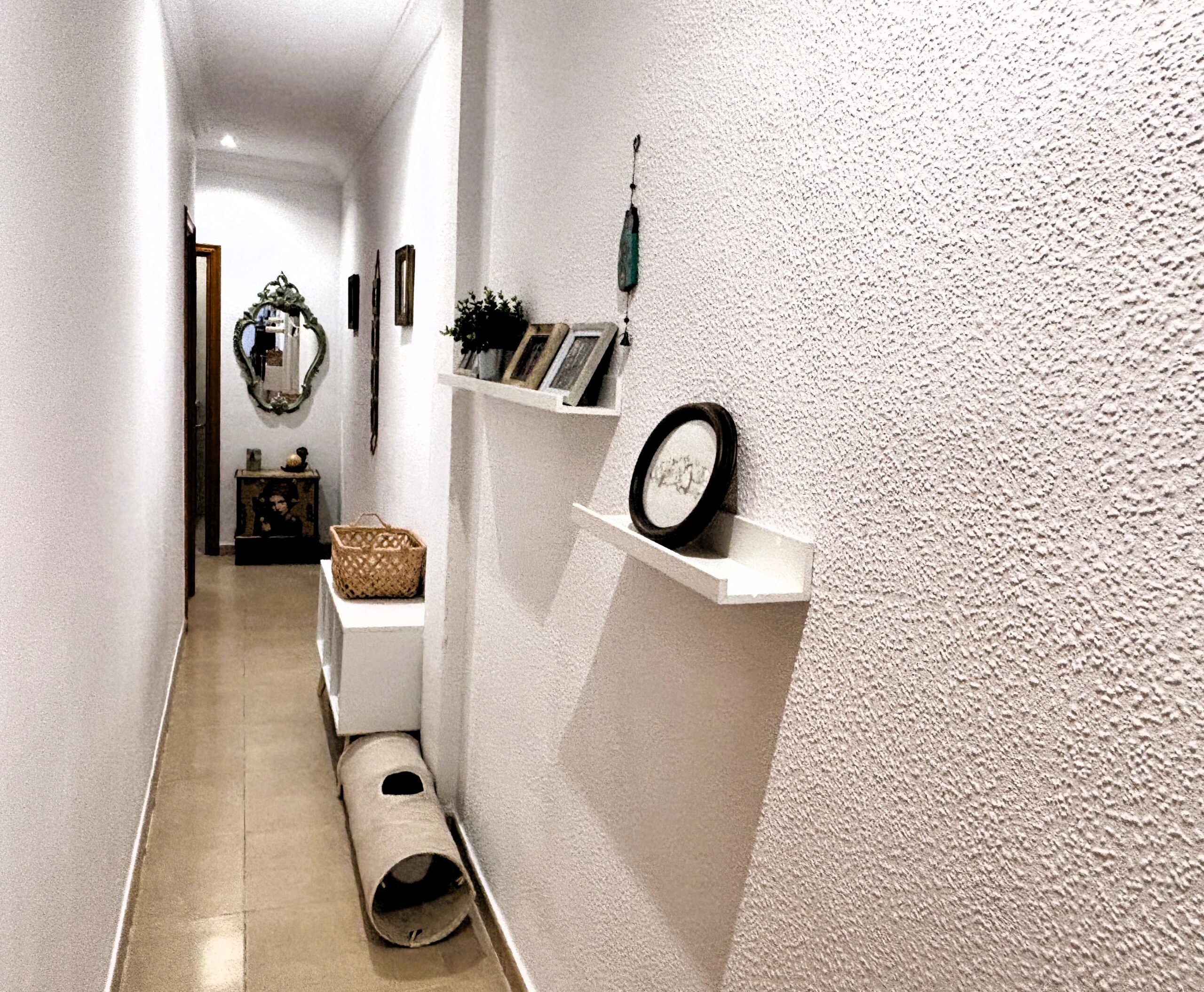 Desde el salón, hacia la izquierda, accedes a un pasillo bien definido que da paso a la zona privada de la vivienda: