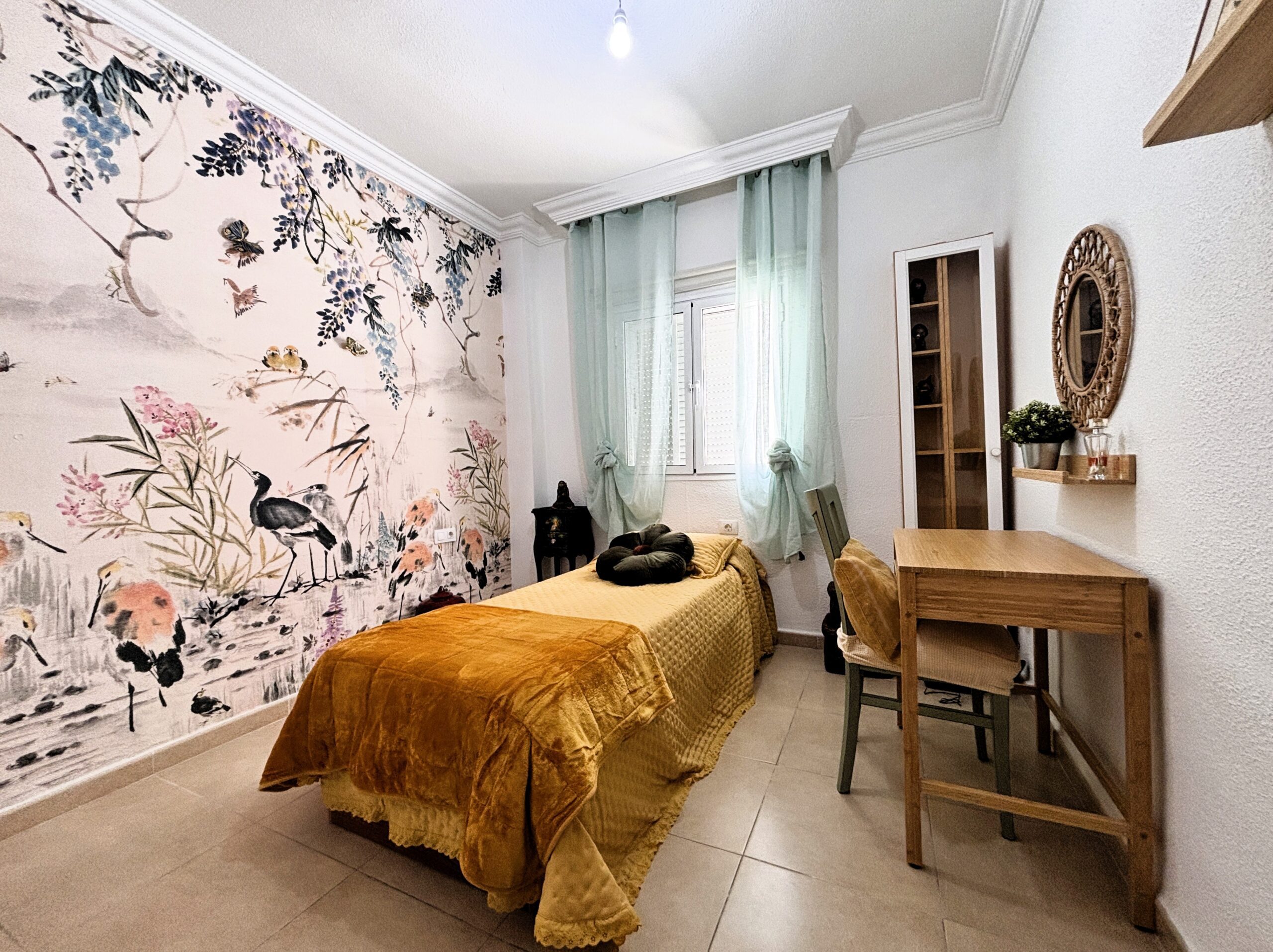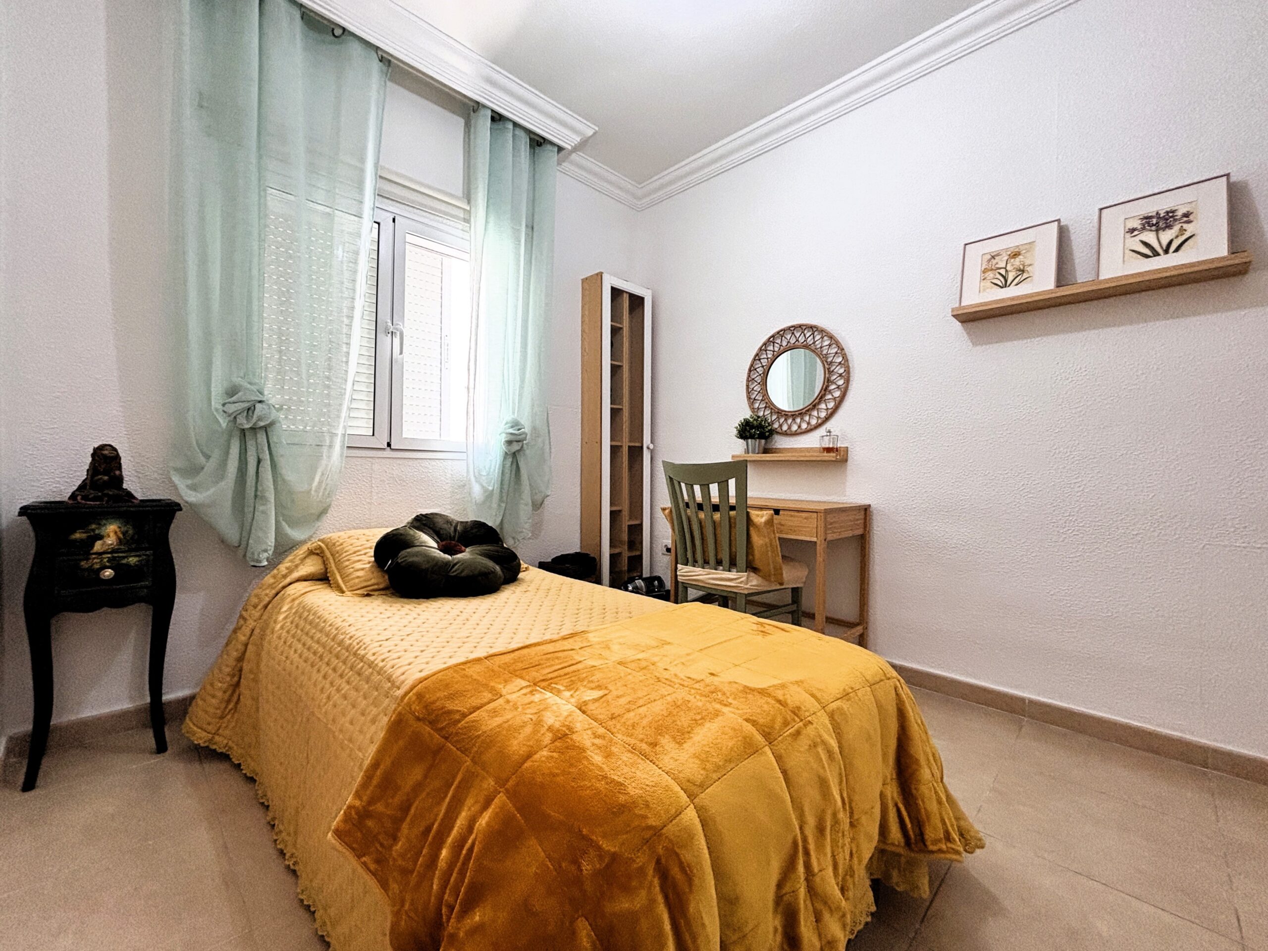 • Luego, tres habitaciones dobles, todas con armarios empotrados y ventanas que dan al patio interior, lo que aporta buena luz natural y ventilación cruzada sin el ruido de la calle.