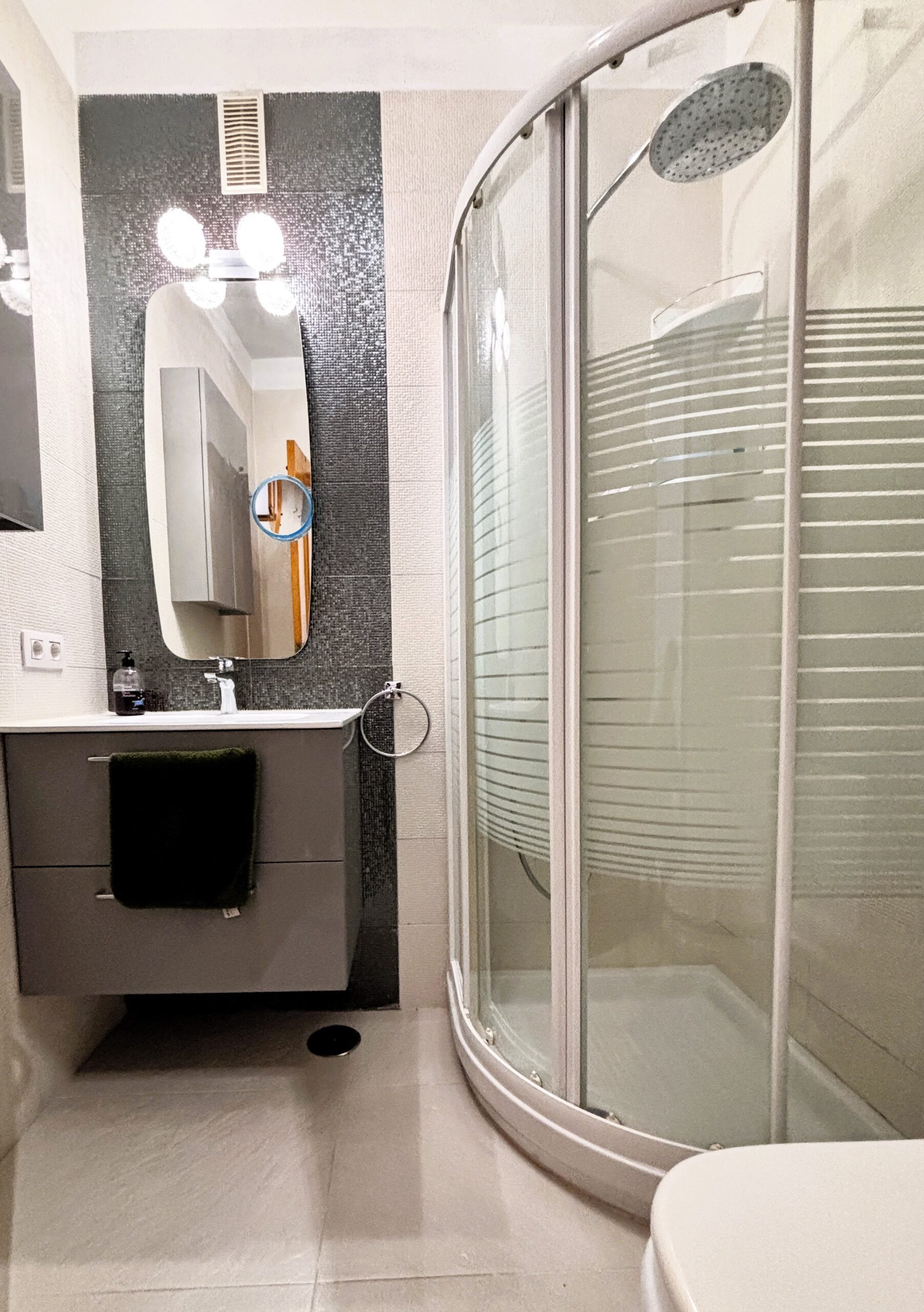 • Lo primero que encuentras es un baño completo reformado, con plato de ducha.